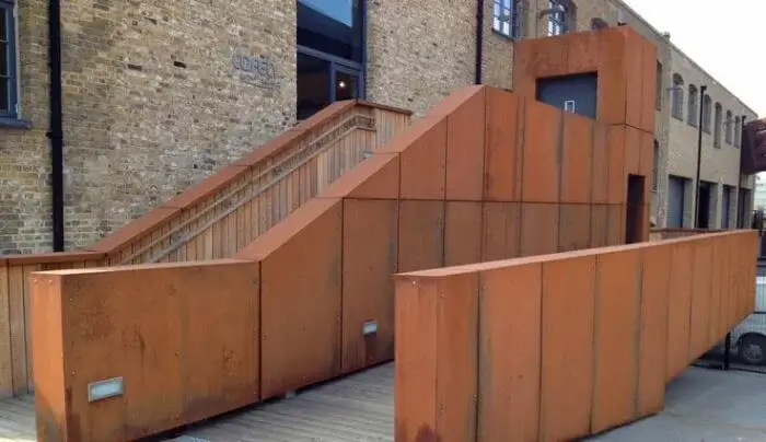 Насправді побачити металоконструкції, повністю покриті іржею, можна побачити далеко не лише у США. І звичайно ж, як уже можна було здогадатися, іржавіють огорожі, стовпи та опори не просто так. Принаймні, якщо перед вами металоконструкція, яка вкрита іржею повністю. В цьому випадку так і було задумано, бо перед вами виріб із кортенівської сталі.