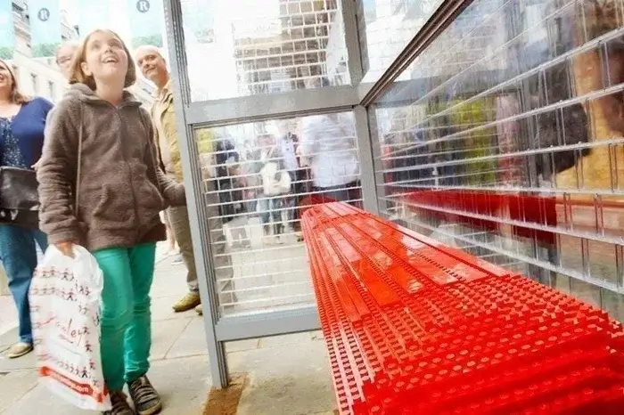 На Ріджент-стріт розташована зупинка, повністю зібрана з деталей LEGO. Лавки, стіни, написи — усе зроблено з легендарного конструктора.