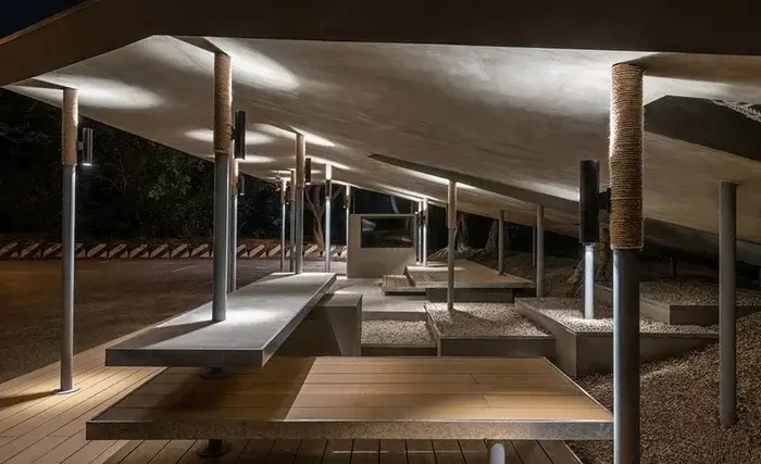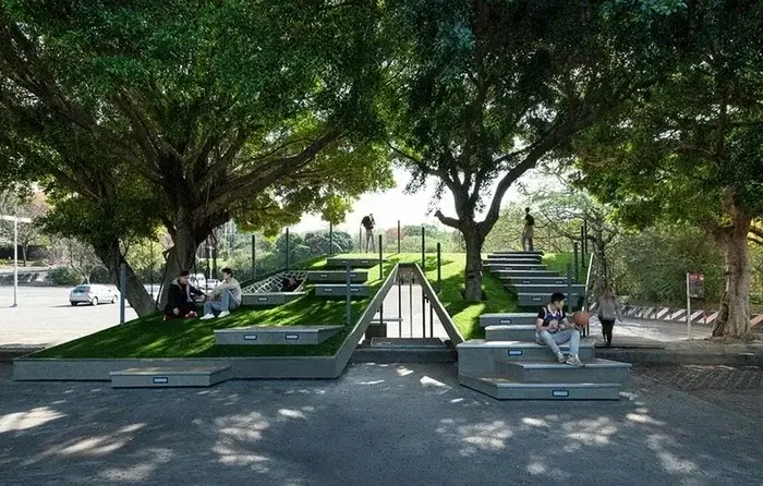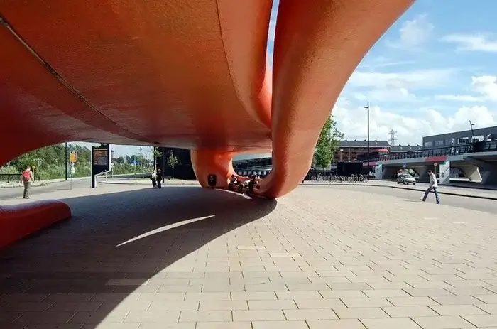 Тут немає лавок і стін. До даху прикріплені обертові модулі, схожі на стручки гороху. Вони захищають від вітру, дозволяють спертися, відпочити або навіть задрімати.