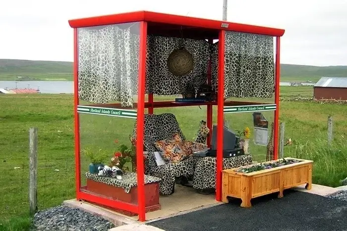 На острові є понад 20 зупинок, але саме цю місцеві жителі зробили по-справжньому особливою. Її повністю мебльовано — і найцікавіше, що інтер’єр час від часу змінюють.